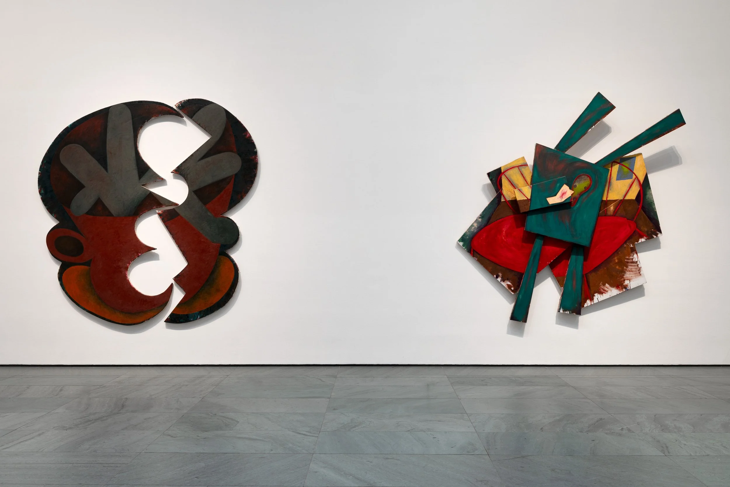 This exhibition traces the development of Murray’s practice through a concise selection of works drawn from over 20 years, including Painters Progress (1981), one of the earliest examples of paintings the artist referred to as “shattered shapes.” Working quickly, to invite spontaneity, she began by making sketches of the forms that would become her canvases and arranging them directly on the wall. She chose to depict everyday objects such as cups and paintbrushes, distorting them into organic forms resembling heads, mouths, and uteri. Murray once likened the potential for endless interpretations of her work to searching for an image in the clouds.